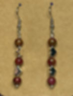 Dangle earrings with heart beads and maroon & gold beads